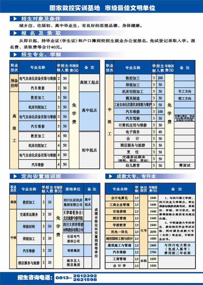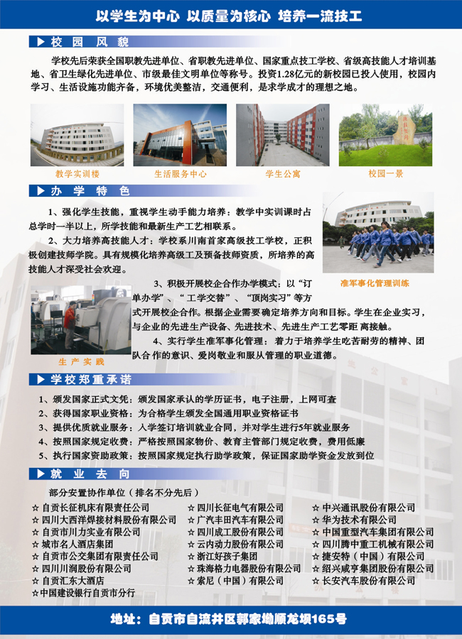 四川自貢市高級技工學校招生簡章