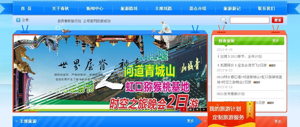 自貢春秋旅行社有限公司創建于2000年8月,是經旅游局批準、工商局依法登記注冊的具有獨立法人資格的旅游企業。公司總部位于匯東新區丹桂大街新匯廣場,公司設有計調部、營銷部、財務部、辦公室四個職能部門,下設富順、沿灘、五星街、貢井、榮縣、綠盛6個門市部和威遠分社,總部與各門市部、分社之間均采取“統一報價、統一管理、統一財務、統一導游”的規范管理。公司經營業務有:招徠、接待各地旅游者來自貢旅游;組織自貢市民外出旅游,專業承辦各種大中型專項考察團,代訂酒店、機票、火車票、租車等業務。并可根據旅游者的不同要求,推出了一系列具有特色的省內、國內旅游線路。公司擁有一批經驗豐富的管理人才和一支優秀的導游隊伍。在管理上堅持“以人為本,科學管理”。在經營上堅持“質量第一,顧客至上,誠信共贏,行業領先”的經營理念。經過十年的發展公司已初具規模,成為一家擁有一流營業場所和現代化辦公設施的綜合實力較強的旅行社。