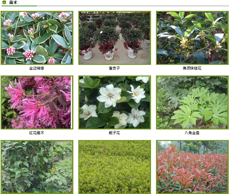 擁有苗木基地三個,總面積近200畝,溫室大棚2個,綠化苗木品種涉及30余種,50多個規格,主要以銀杏、桂花、皂角、香樟、紅椿等為主�;ɑ苡^葉植物中高檔涉及百余種。