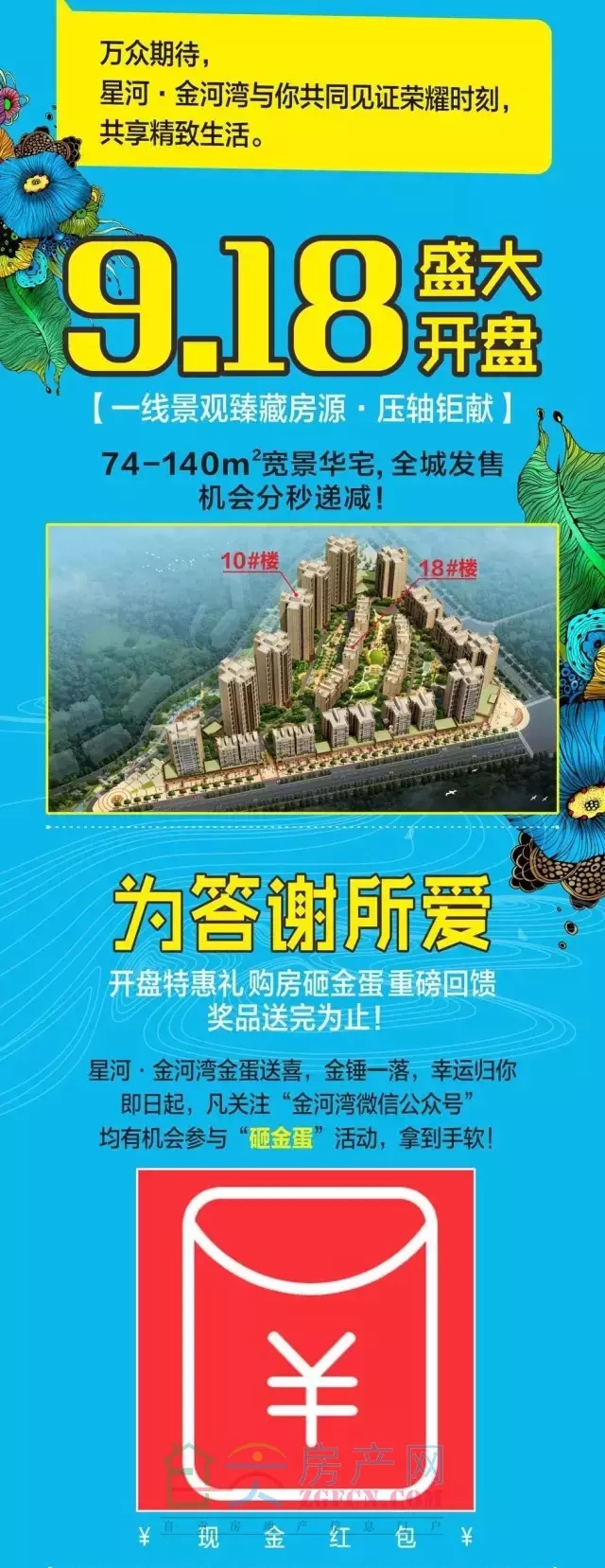 榮縣星河·金河灣10#、18#雙景樓皇9月18日盛大開盤,砸金蛋贏好禮。74-140㎡闊景華宅,全線發售,期待您的加入!