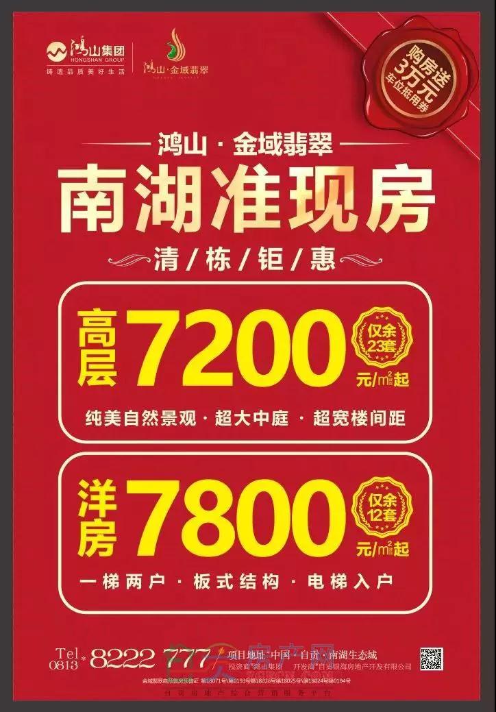 鴻山·金域翡翠清棟鉅惠,高層7200元/㎡(建面)起,僅余23套。 純美自然景觀、超大中庭、超寬樓間距。洋房7800元/㎡起,僅余12套,一梯兩戶,板式結構,電梯入戶。特價房源,特大優惠,購房還送3萬車位抵用券,錯過不再!!數量稀缺,先搶先得。