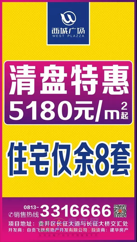西城廣場臻品水景房毗鄰旭水河畔,可在家中俯瞰平橋瀑布之壯美。平橋瀑布水位垂直落差近6米,斷巖峭壁,奇石犬牙交錯,有“行走天下路,難見市中瀑”之美譽。坐擁西城廣場完美配套,足不出戶盡享貢井繁華。精彩紛呈的SHOPPING MALL,帶著您穿梭于流行風尚間�,F西城廣場住宅僅余8套,清盤特惠價5180元/㎡起。