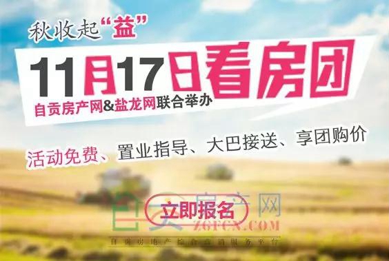 以上就是自貢房產網為大家整理的雙十一購房優惠清單,如果您還是拿不定主意,不妨參加11月17日由自貢房產網聯合鹽龍網共同舉辦的大型免費看房團活動�?捶坎粌H有免費專車接送,還能為您一路提供專業的置業建議,并且可以享受超值團購價購房喔!趕緊報名吧!
