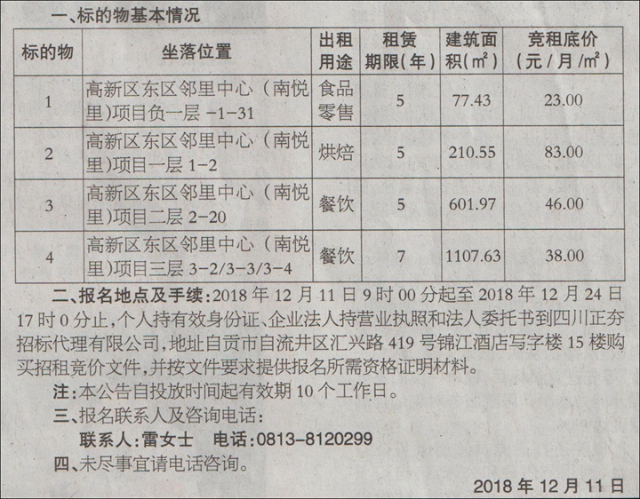 我公司擬公開對外競價出租位于匯南路與紫荊街交匯處,緊鄰內宜高速公路以西,紫荊街南延線以東,匯南路以南,高新區東區鄰里中心(南悅里)項目第一批次店鋪招租,具體公告如下: