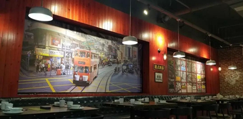港式茶餐廳提倡輕裝修重裝飾,粵港茶餐廳融入香港元素和自身特色。紅黃相間的元素,墻上帶有香港文化的圖標(biāo)。不同于傳統(tǒng)茶餐廳,粵港茶餐廳空間明亮,給人一種舒適安逸的感覺。
