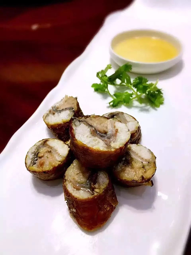 我吃過這款龍穿虎肚,現在還能記得起鰻魚的細膩,豬腸的微微抵觸感,在這之前,我從來沒有想象過,鰻魚塞進豬的直腸,那是一種怎樣的感受。清雅,馥郁,莊重,在許多地方,豬大腸是人們喜歡的食物,但是總覺得有點不上臺面,但是在潮汕,這是“硬菜” 猶如當陽橋頭一聲吼,喝斷橋梁水倒流。