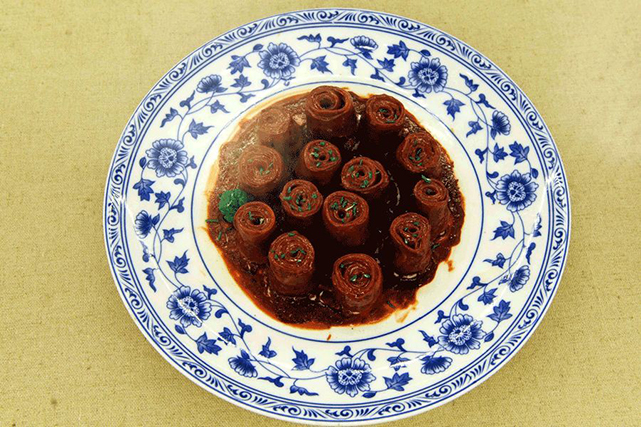 在山東,這道菜始于清光緒年間,傳說首創于濟南九華樓。在我有限的經驗中,罕有吃到過完美的九轉大腸,這道菜重在調味,需要苦辣酸甜咸五味俱全。
