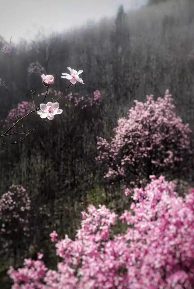 △江油山里有大片的辛夷花,朦朧仙氣,花海如夢