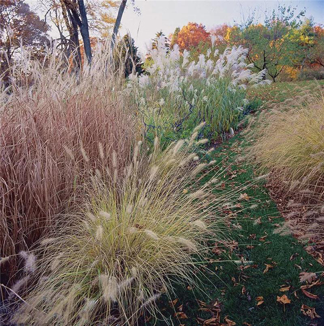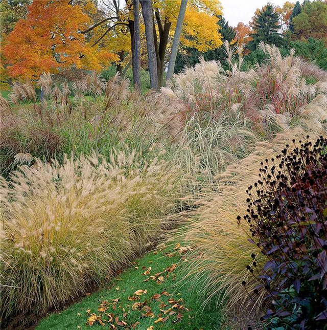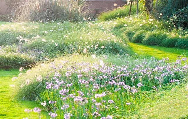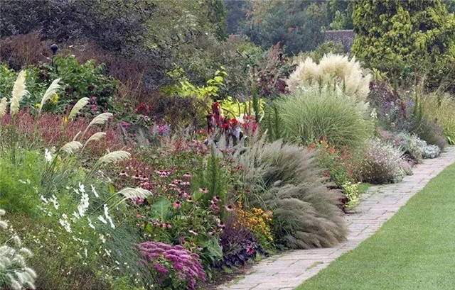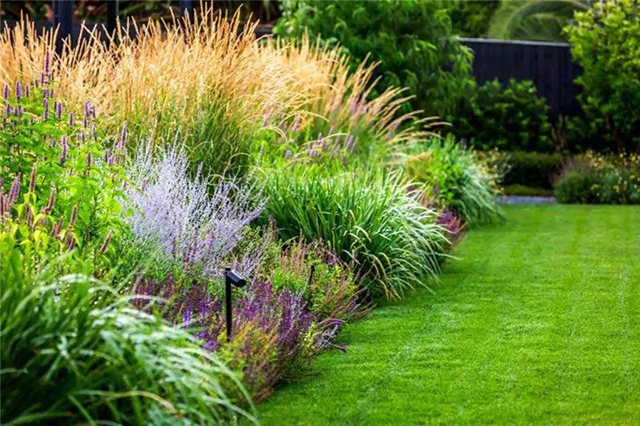 根據株高,觀賞草可分為矮、中高、高型。矮型常用于花境或道路鑲邊植物,中高型常以叢植方式配植,高型常密植且用以分割空間或用作背景。