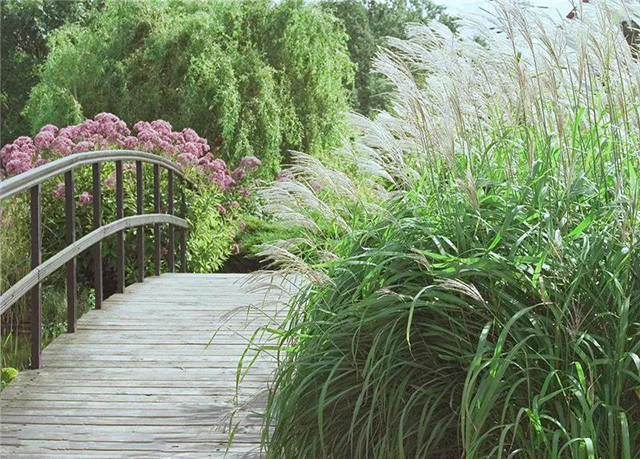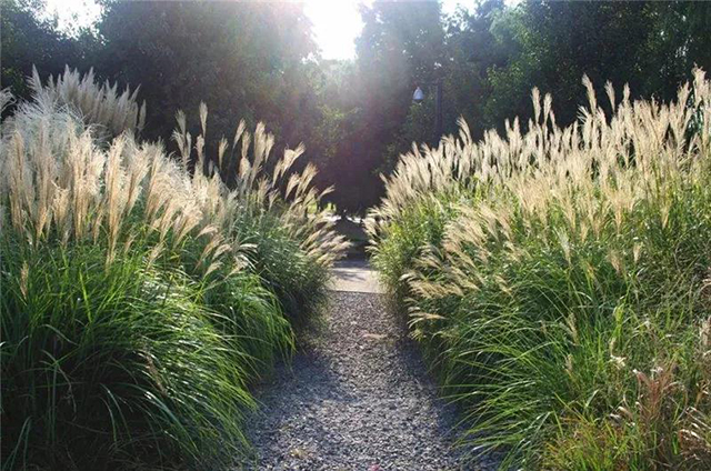 微風吹過,觀賞草的葉片前后擺動,沙沙作響。秋季,成片種植的觀賞草隨風起伏,像浪花翻滾,盡現動感美,這種動感美和聲音效果是一般觀賞植物所不具備的。它既可獨立成景,又可作為色塊或栽植在道路兩側,觀賞效果極佳,即使在寒冷的冬季,許多干枯的觀賞草葉片變色后仍不凋落,或頑強挺立,或隨風搖曳,豐富了冬日的景觀。