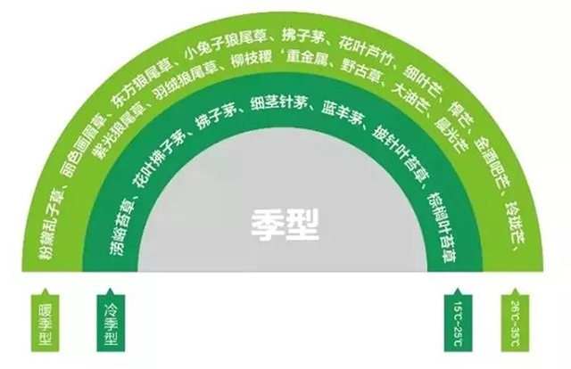 根據其所適應的不同氣候溫度,按季型可分為冷季型與暖季型。