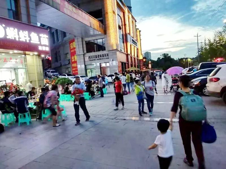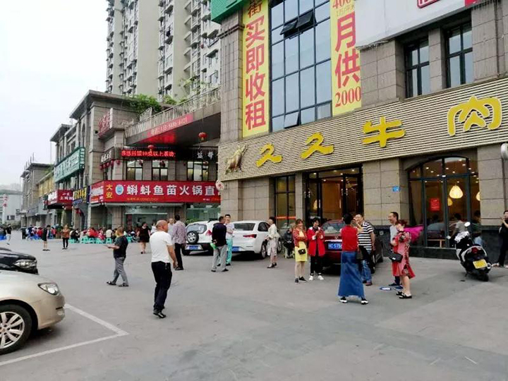 已經非常火爆的餐飲一條街,核心十字路口,門面=天然廣告位,門面亮的開。超大廣場,停車免費,整條街餐飲茶坊非常火爆,成熟,穩定,無風險。