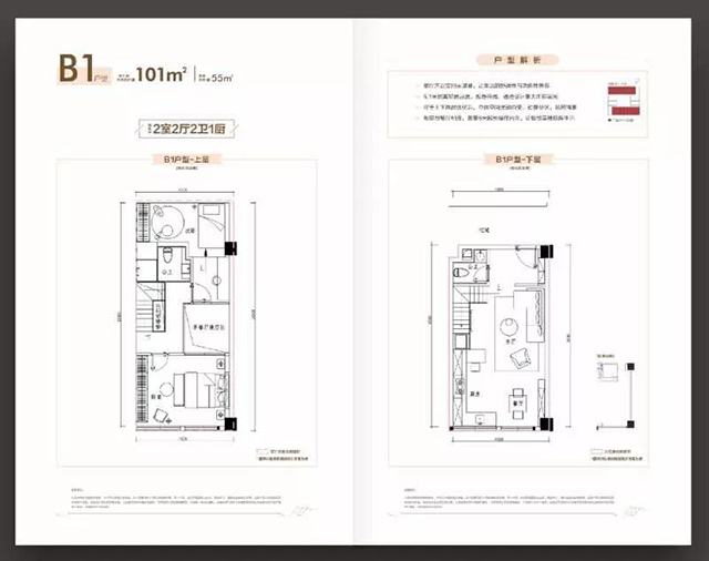 建面55㎡-優(yōu)化后101㎡-2室2廳