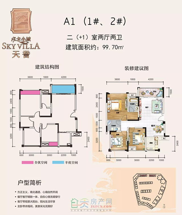 1、三室兩廳:A1建筑面積約 99.70m²