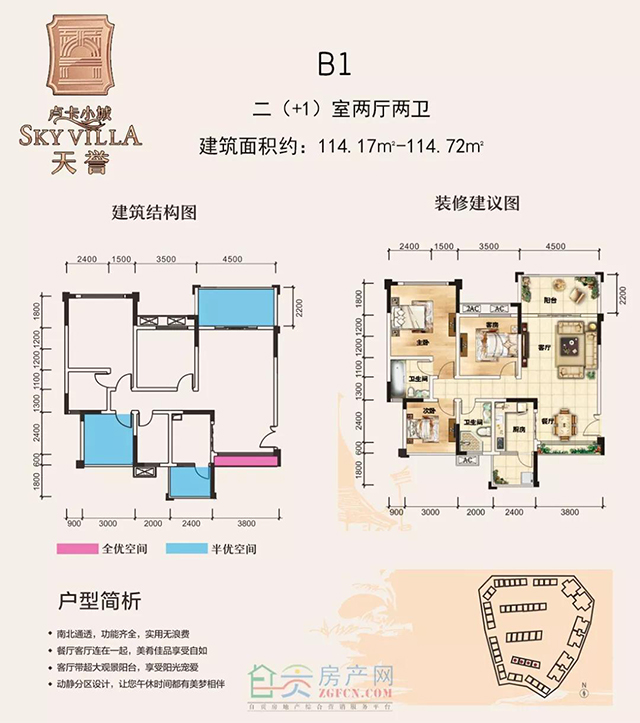 1、三室兩廳:F建筑面積約 117m²