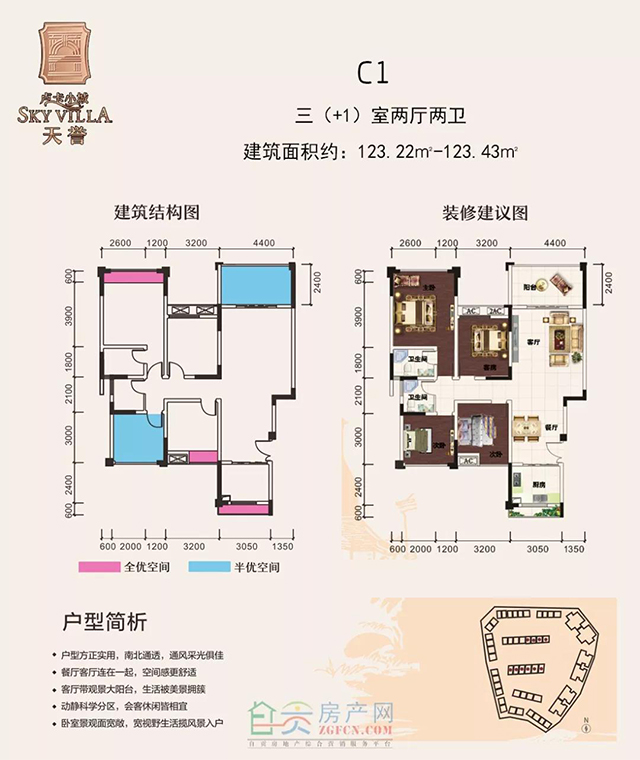 2、四室兩廳:C1建筑面積約123m²