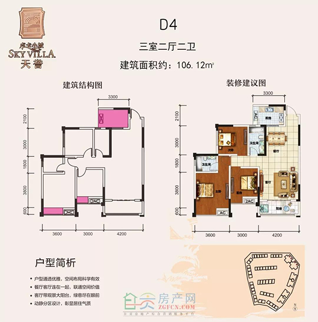 2、三室兩廳:D4建筑面積約 106.17m²