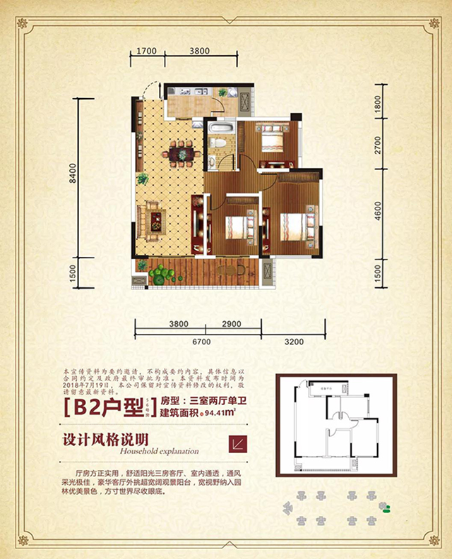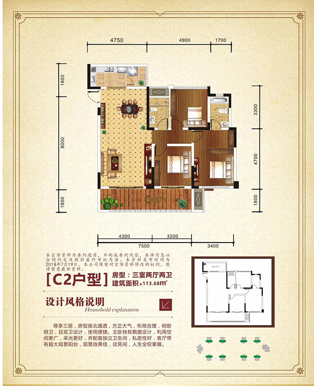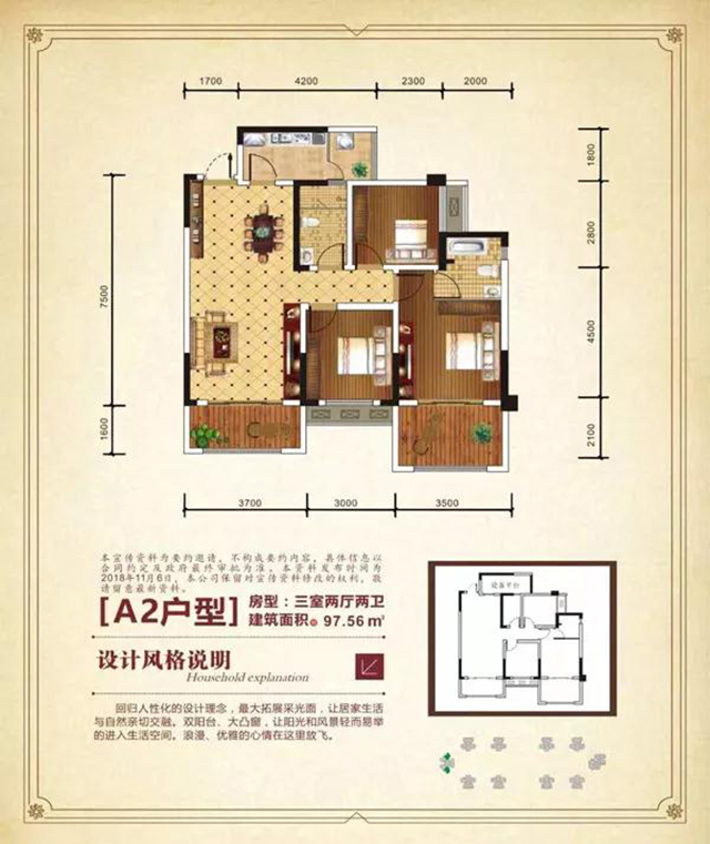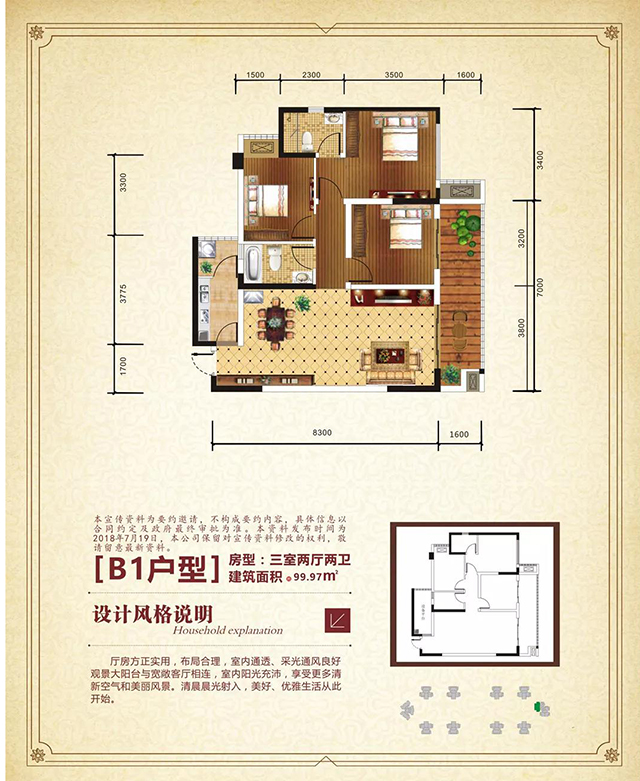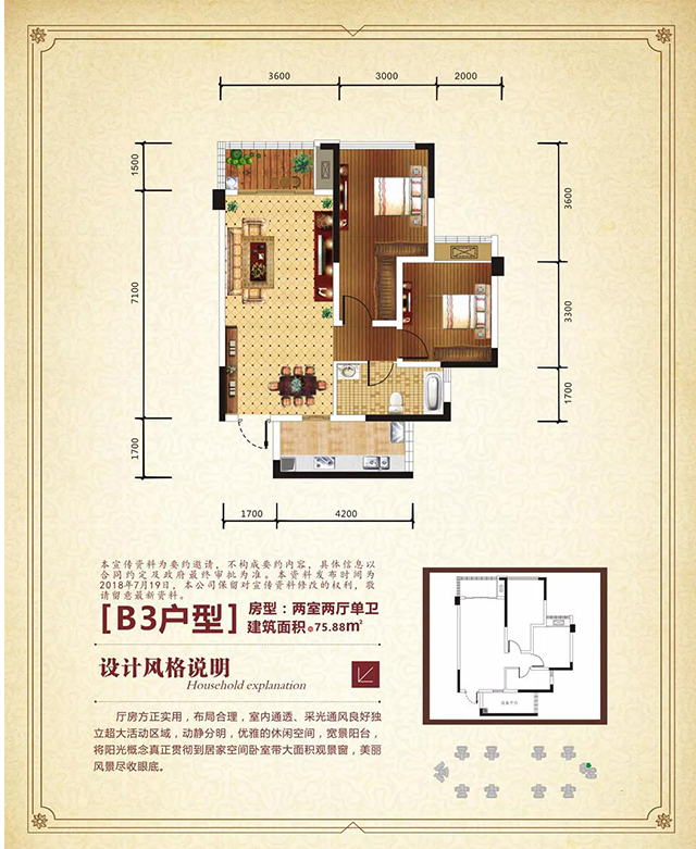 1、兩室兩廳:B3建筑面積約75.88m²。