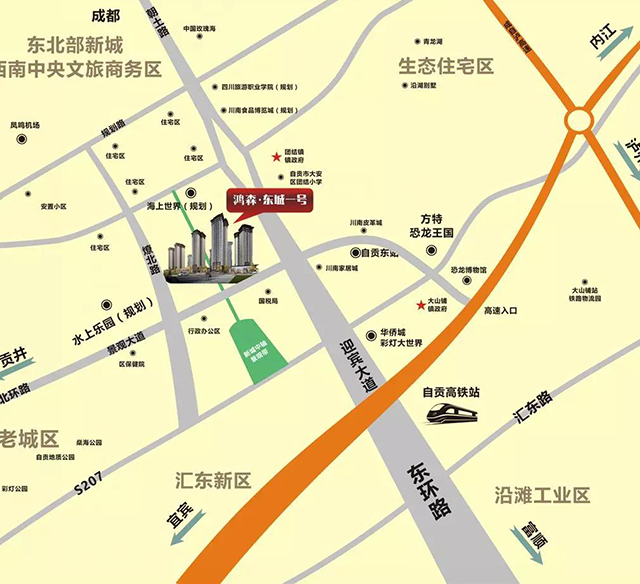 鴻森·東城一號項目由自貢市鴻森房地產開發有限公司投資建設,總占地65畝,規劃1328戶,是東部新城首個智能化精品住宅項目。項目以現代簡約風格結合歐式線腳建筑設計手法,采用圍合式建筑布局,項目由10棟瞰景高層組成,其中1棟2梯6戶,共26+1層,1棟3梯6戶,共26+1層,其余8棟均為2梯4戶,共32+1層。小區中心商業街將小區分為A、B兩個組團,在項目整體以新中式設計風格,立志打造自貢最舒適、最宜居的生態小區。項目坐擁繁華城市生活廣場的商業氛圍、得天獨厚的城市景觀公園、優越的自然生態環境、完善的區域配套、設施配套等,其價值不可估量。