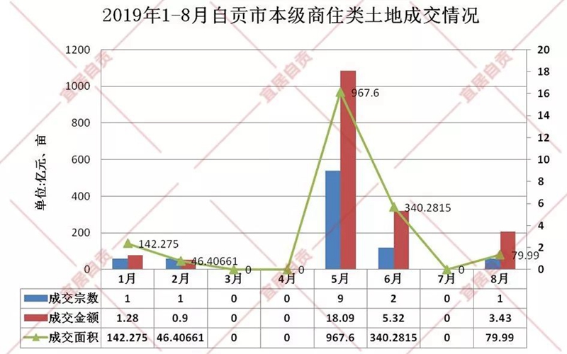8月自貢市本級僅成功出讓1宗商住類用地,總成交面積79.99畝,同比下降42.5%,總成交金額約3.43億元,同比下降32.6%。