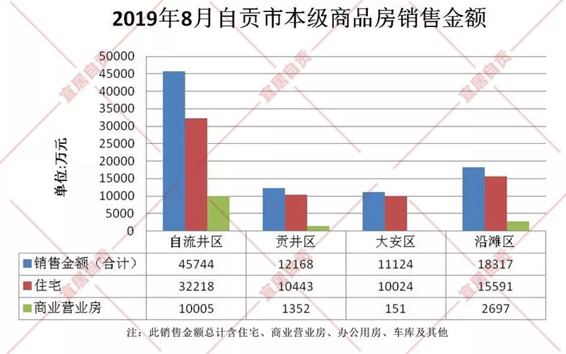 貢井區8月市本級商品房銷售共計258套,比去年同期上漲68%,其中包含住宅207套、商業營業房18套及其他,銷售額約1.21億元,同比增長66%。