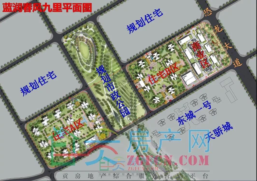 再說藍潤·春風九里,該樓盤位于在建東城一號北側、恐龍大道西側、海螺灣水上樂園東側、規劃居住用地南側,毗鄰大型商業天驕城及銅鑼灣廣場,可謂是地處東北部新城腹地。項目住宅區分為A、B兩個區域,A區和B區中間為規劃市政公用,目前春風九里即將推出的是位于水上樂園和規劃公園之間的A區。
