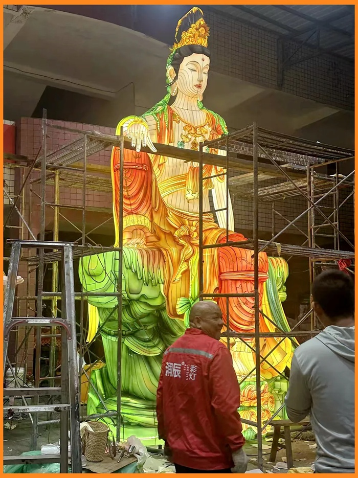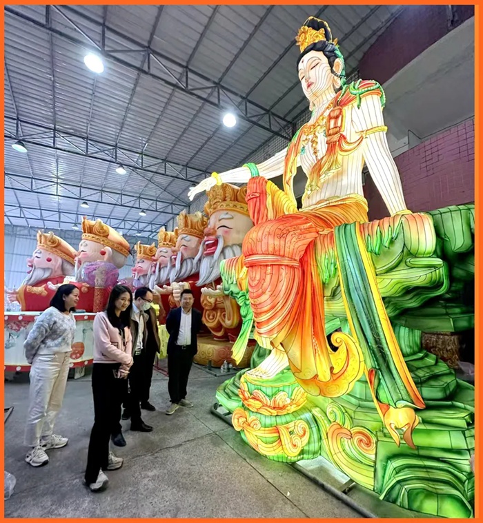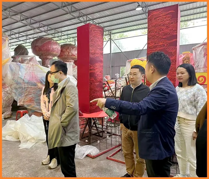 調研中,王成龍向調研組匯報了公司的基本情況和彩燈制作工藝流程,并帶領參觀了制作現場。生產現場彩燈工匠們正在熱火朝天的制作著2025年節氣用各種彩燈(燈組)。